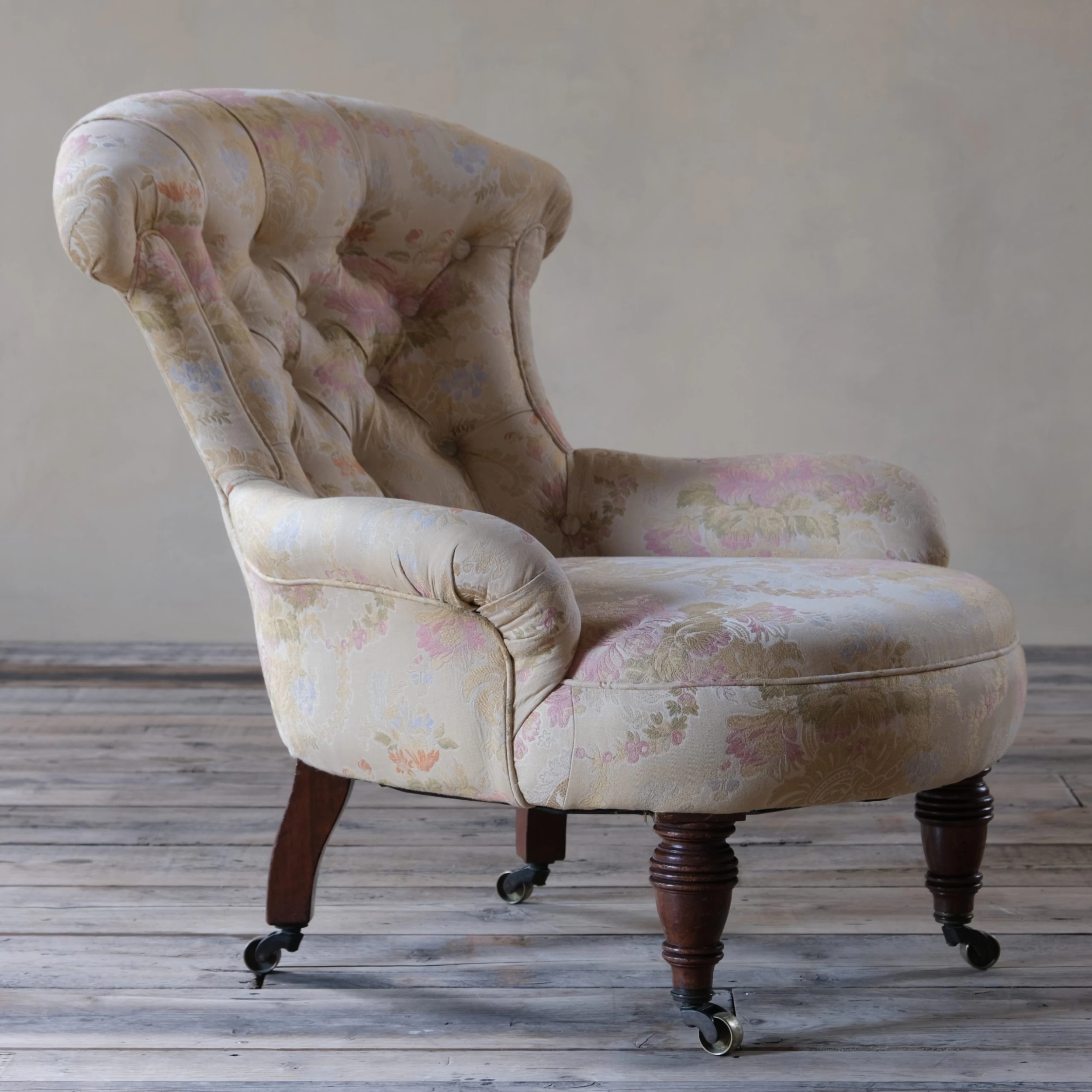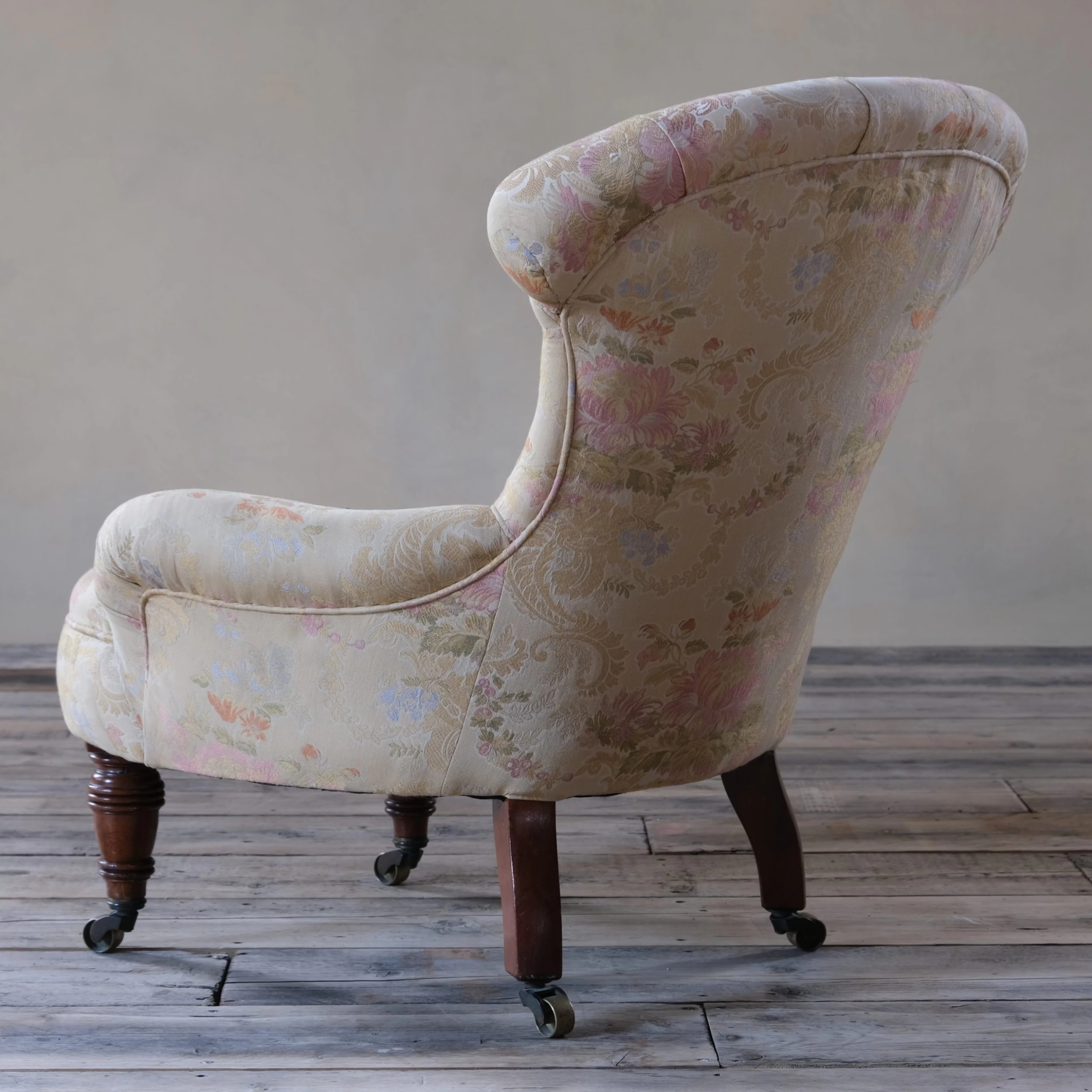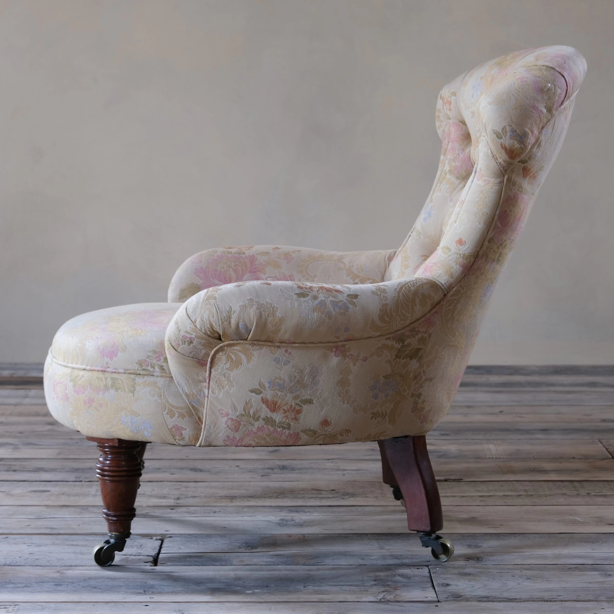 Upholstered in a nice clean floral fabric which is very much fit for use.