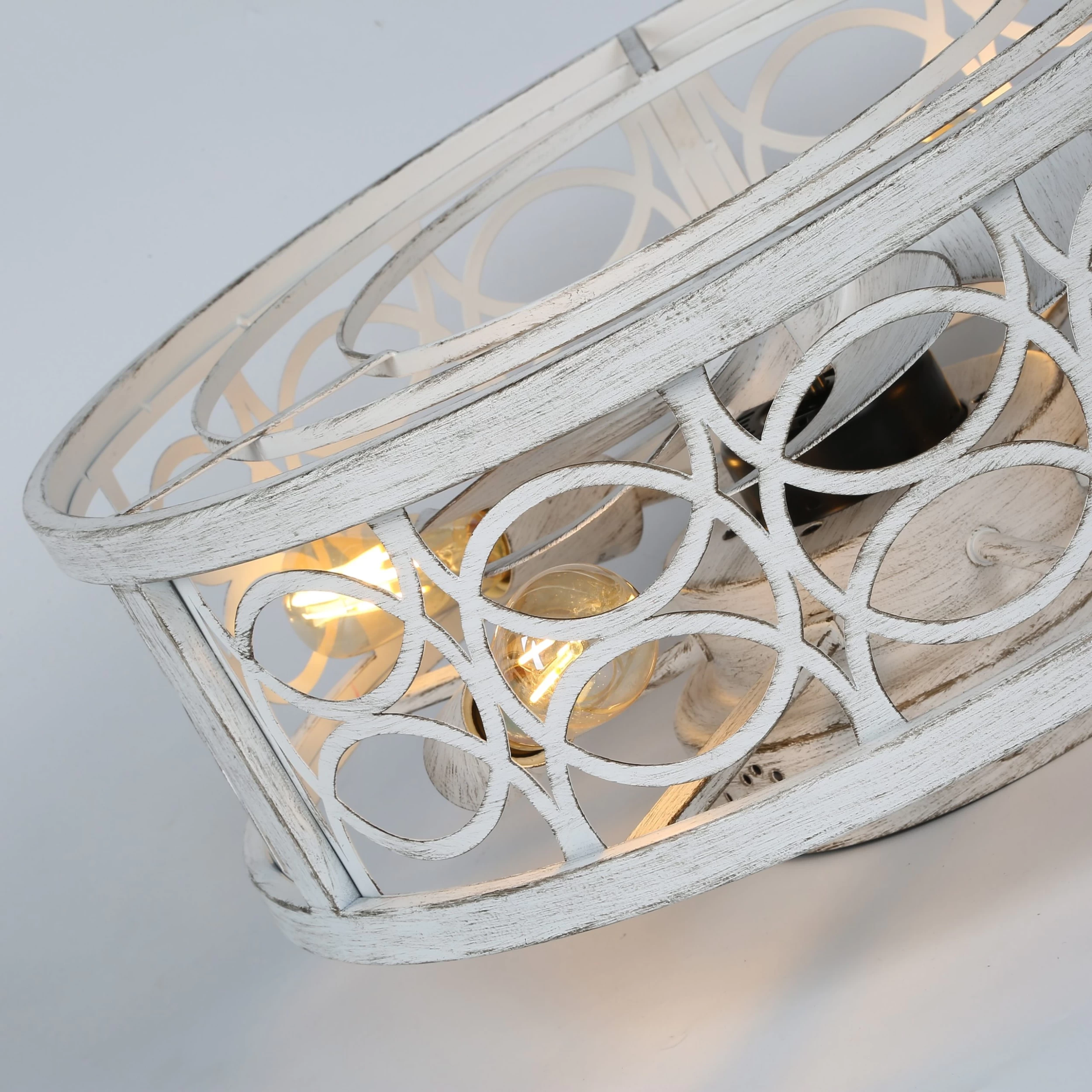Introducing our exquisite Vintage Style Ceiling Fan in a stunning Cream Distressed finish, perfect for any modern and farmhouse décor. The petite while powerful ceiling fan was hidden in the center of the main structure, making sure that the fixture always stays a sleek look.4 bulbs will give off warm and inviting glow, sufficient for both daily life and ambiance creating. With the included remote control, you can effortlessly adjust the fan speed and dim the lights anywhere in the room. Order now and enjoy lifetime warranty on the motor and one year on all the other parts!