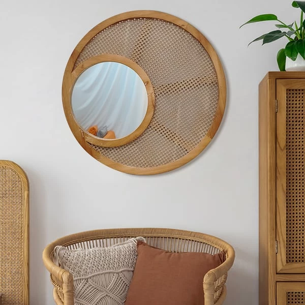 Unique Design: This wall mirror is designed by superimposing 2 circles. The high-definition mirror surface is decorated with hollow rattan, which is very attractive.