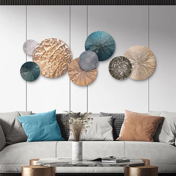 This wall decor is composed of 8 circles, with textured surface, unique design and strong three-dimensional sense. It is made of high-quality wrought iron material. Hang it in the living room, bedroom or dining room to create a decorative atmosphere of exquisite art.