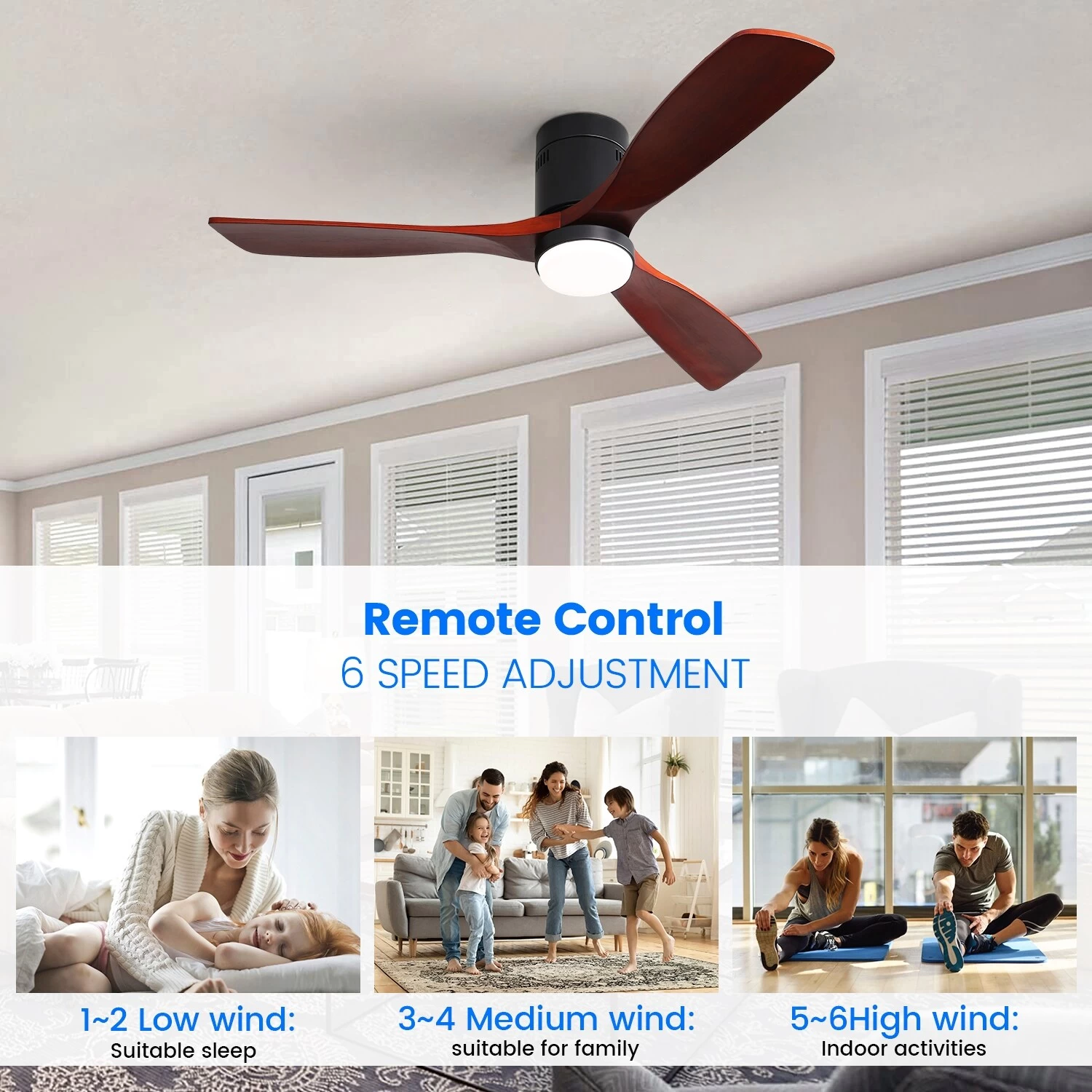 Experience the perfect combination of functionality and style with our modern ceiling fan with remote control and light kit. Versatile and suitable for any room style, it can transform your living space into a comfortable and beautiful haven. With reversible blades, the ceiling fan provides efficient airflow in both summer and winter, while the remote control makes it convenient to control the 6-speed settings and timer function. Whether you need to cool down after a workout or set the mood for a romantic dinner, the dimmable LED bulbs give you total control over your lighting. The high-quality material and craftsmanship ensure a stable and solid performance. Additionally, this ceiling fan is damp-rated, making it perfect for use in covered porches, patios, sunrooms, restaurants, meeting areas, fitness centers, sports facilities, living rooms, and bedrooms. Plus, with its low maintenance and energy-efficient LED technology, you’ll enjoy the beauty and comfort of this ceiling fan for years to come.