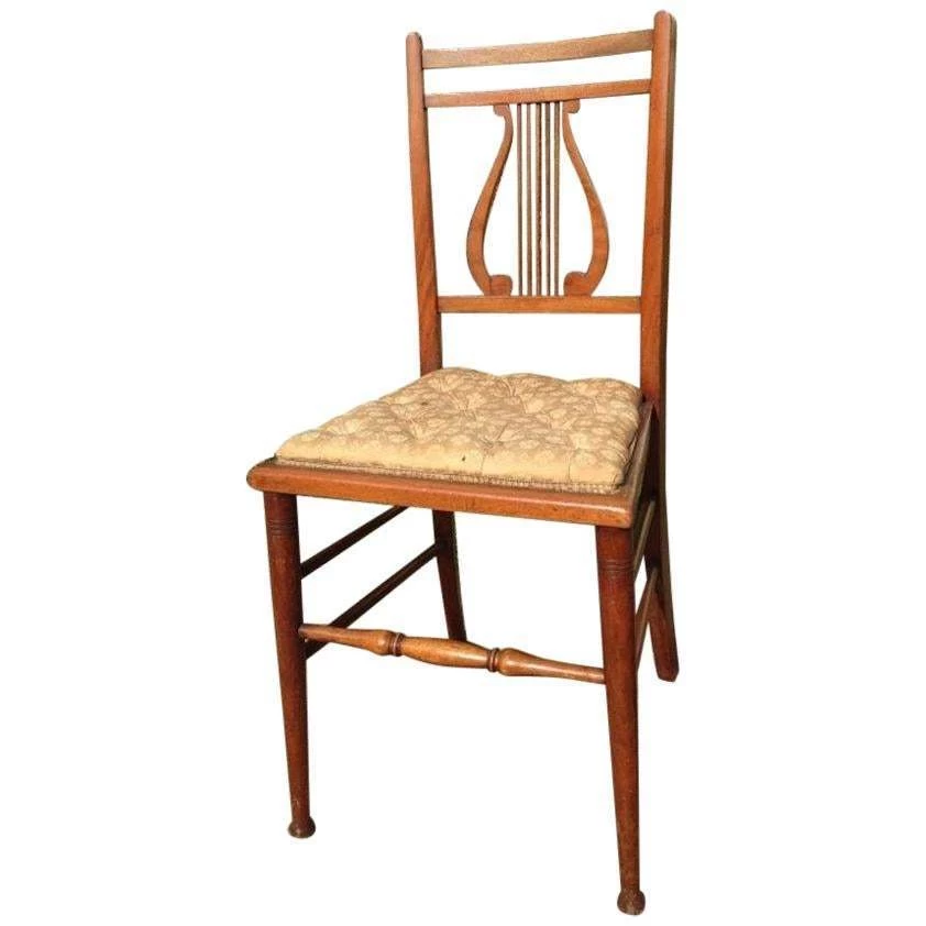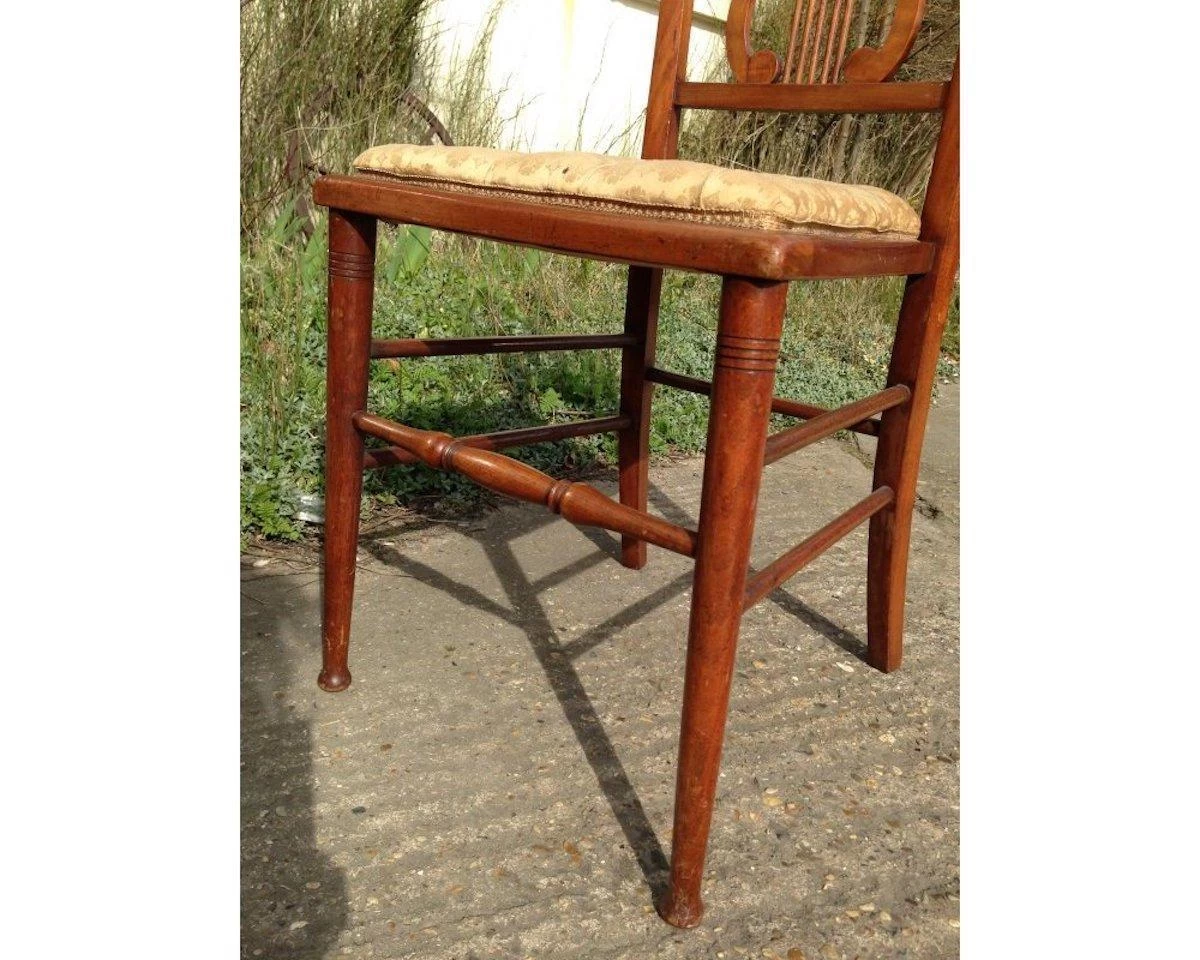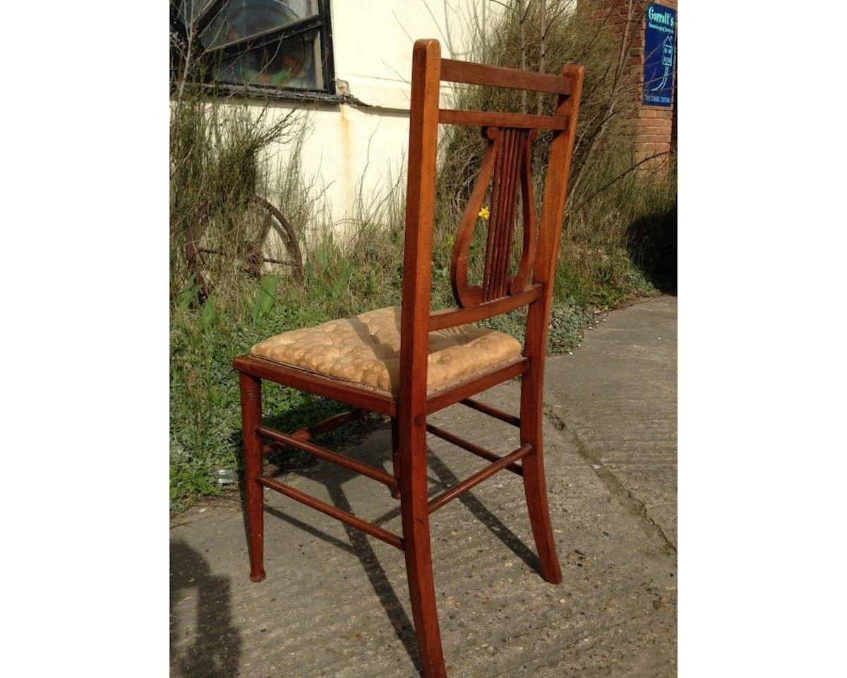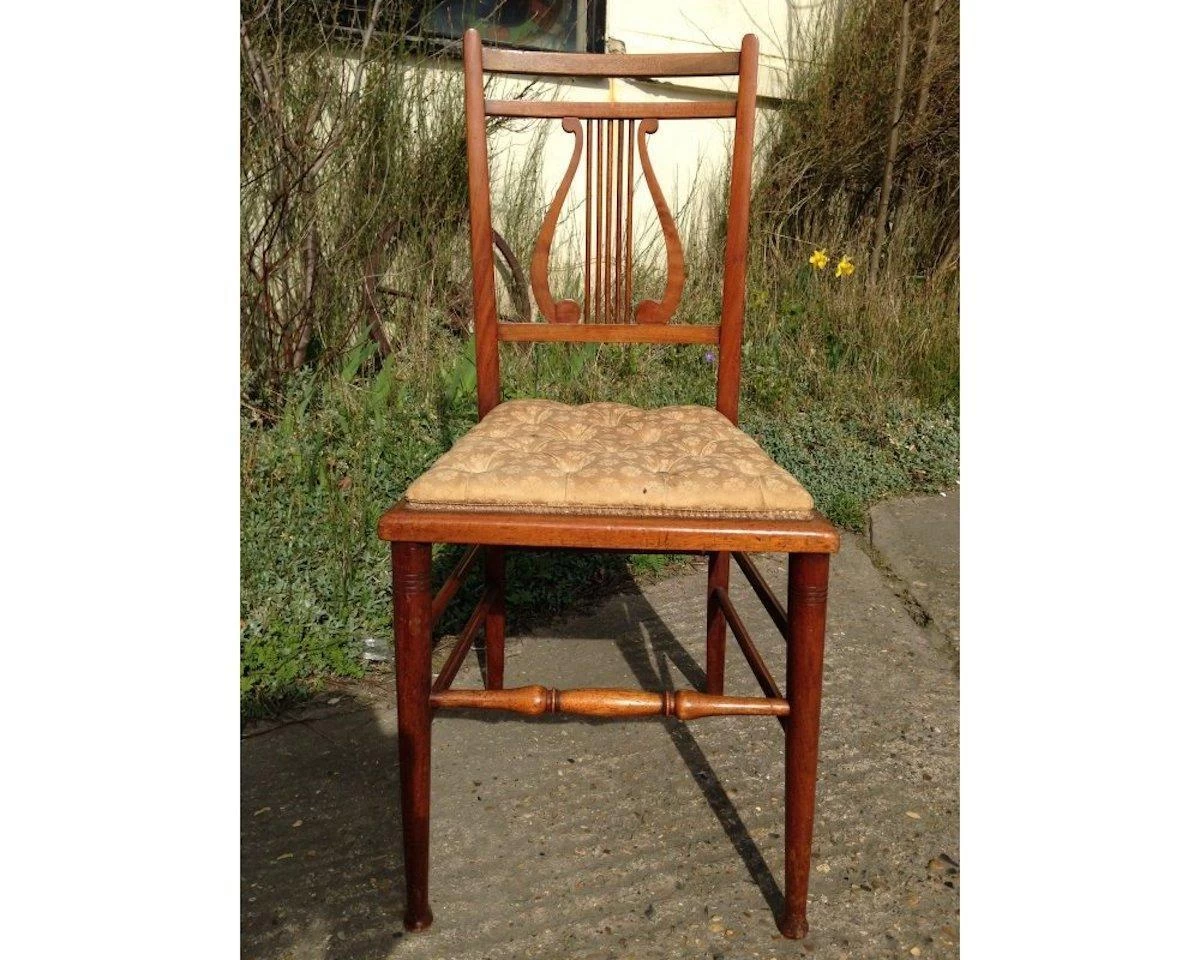 An aesthetic movement walnut lyre back bedroom chair in wonderful original condition retaining it’s original button seat.