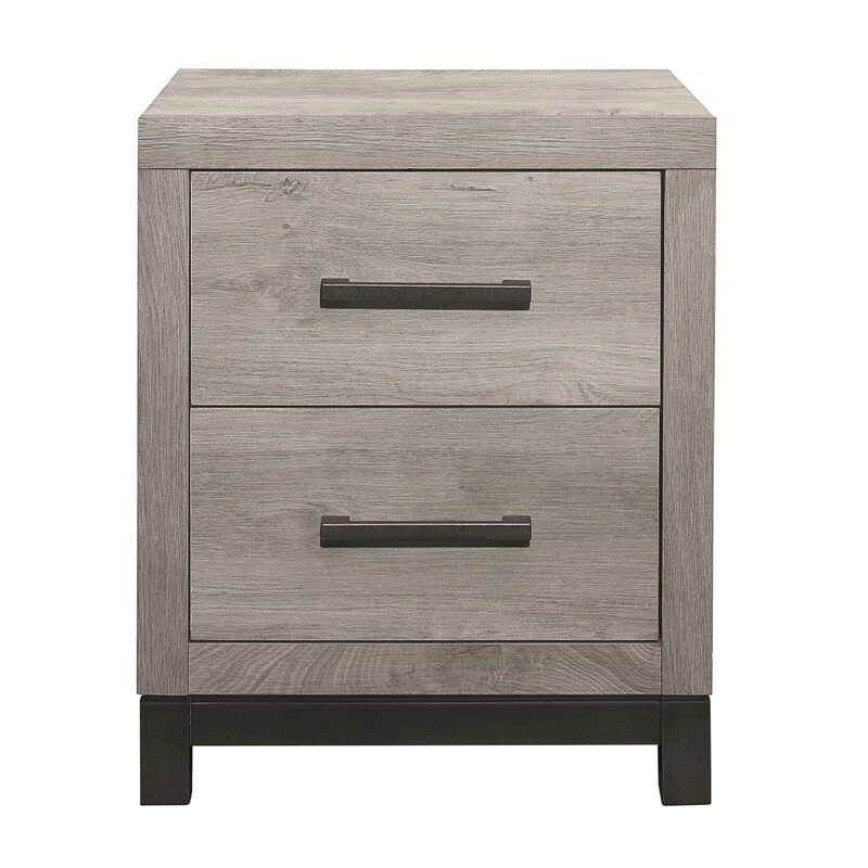 The Zephyr Collection nightstand is a sleek and modern piece made of premium materials, featuring 2 dovetail drawers with metal glides, a 2-tone finish, and scratch-resistant melamine laminate.
