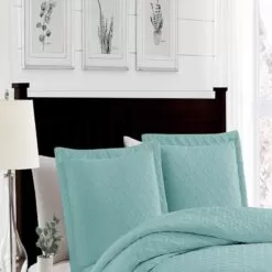 RT Designers Collection Bella 3pc Pinsonic Premium Quality All Year Round Quilt Set For Revitalize Bedroom King Aqua Aqua