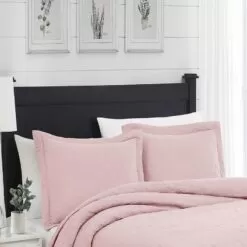 RT Designers Collection Milla 3pc Pinsonic Premium Quality All Season Quilt Set For Revitalize Bedroom King Blush Blush