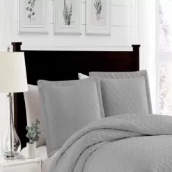 RT Designers Collection Bella 3pc Pinsonic Premium Quality All Year Round Quilt Set For Revitalize Bedroom Queen Silver Silver