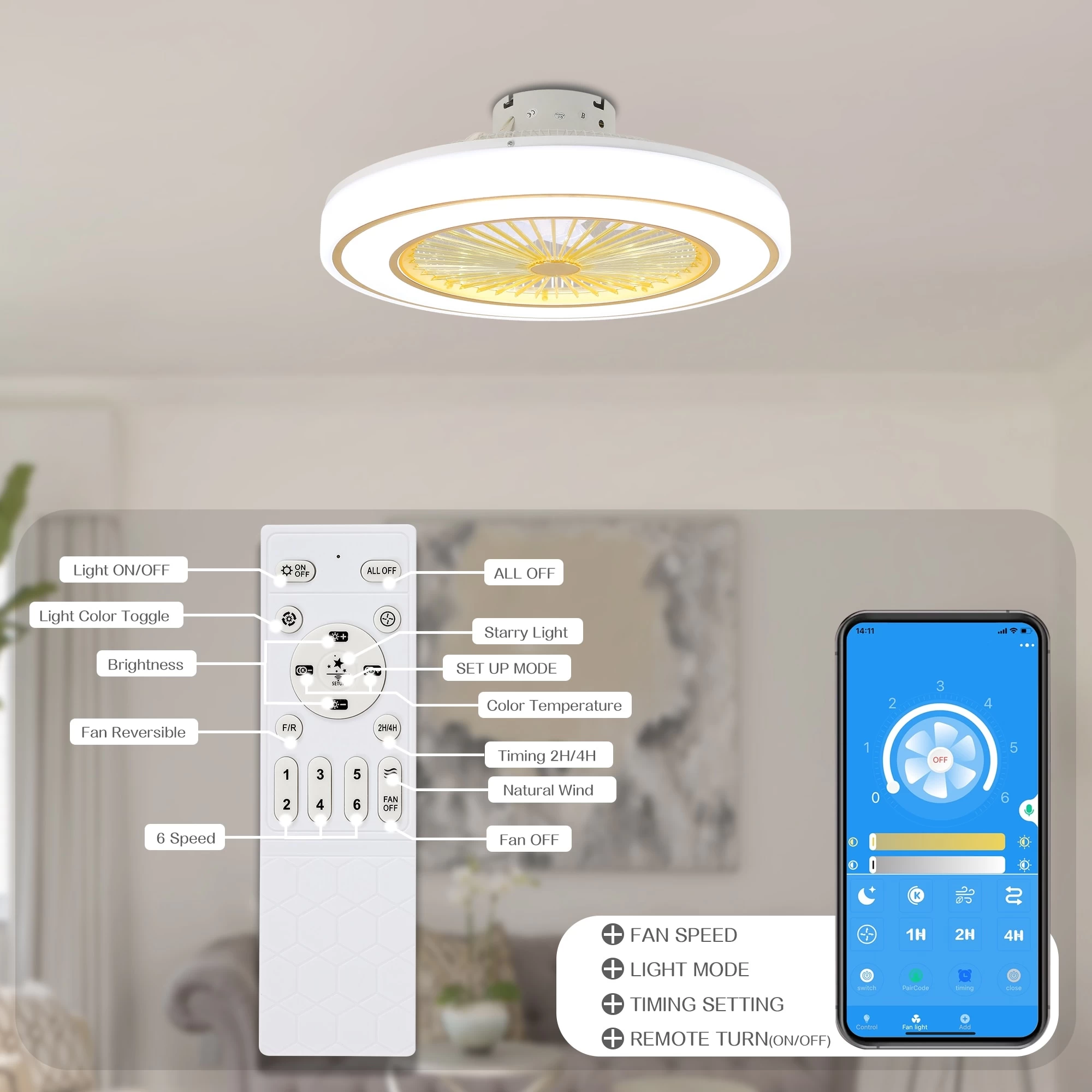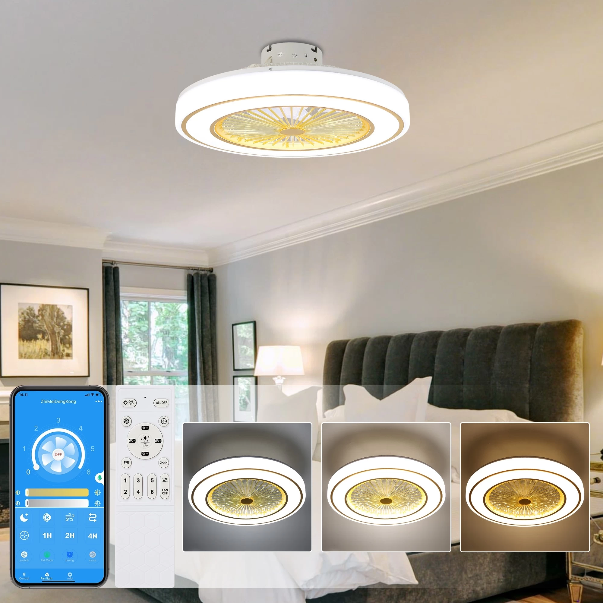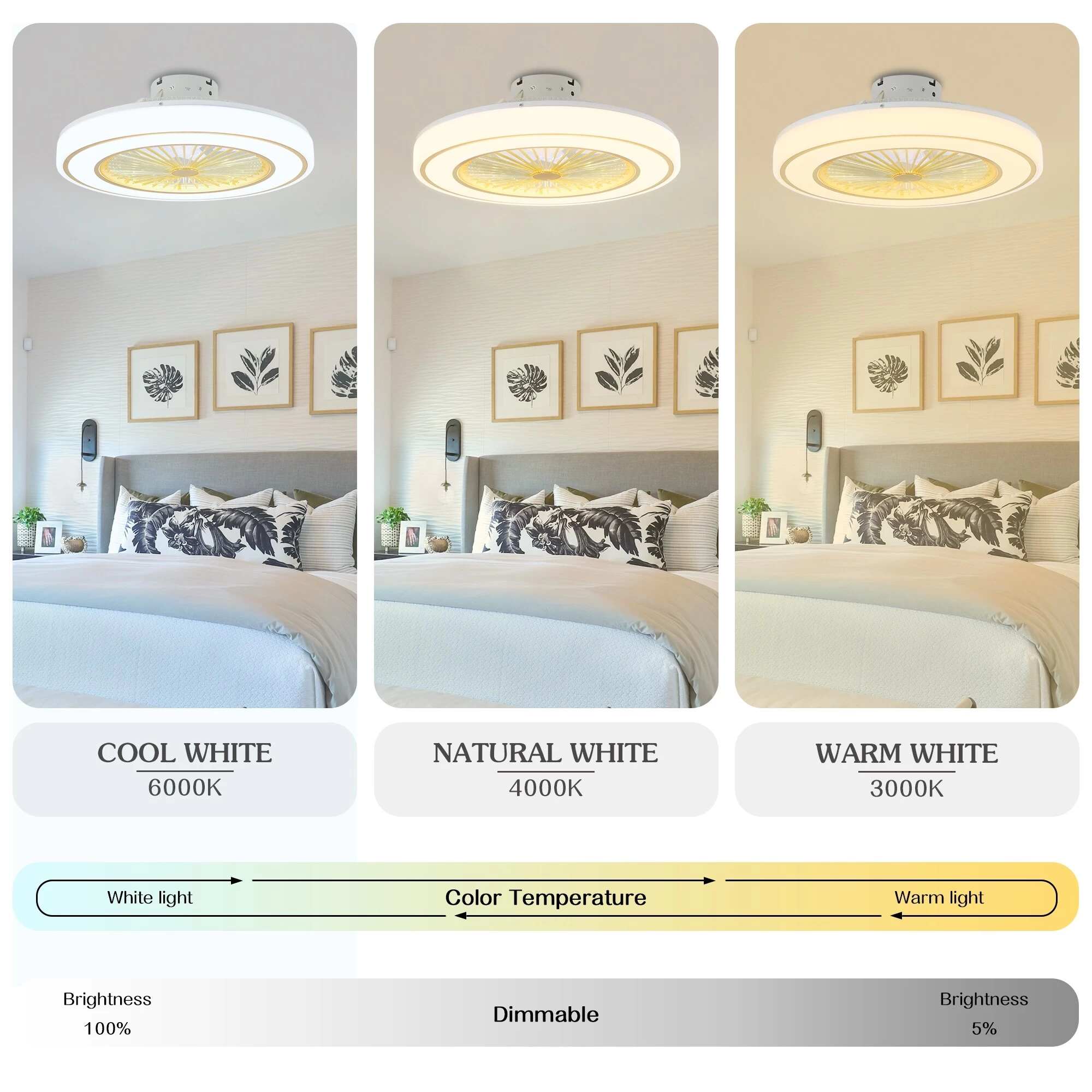 Provide a personal and stylish design for your home space with this flush mount ceiling fan. There are six wind speeds that you can adjust to suit the current environment. With three-color dimming technology, you can switch three kinds of lights: white light, warm light, and neutral light. You can choose the color temperature light you like according to your preferences. The built-in LED light does not need to buy its own bulb, which is very convenient. All functions can be controlled by the attached handheld remote control and mobile APP. The noiseless machine creates a quiet and comfortable sleeping environment.