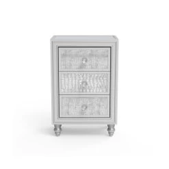 Luxury Mirrored Nightstand 3 Drawers Bedroom End Table Silver Finished Sofa Side Tables