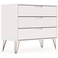 QuikFurn Modern Scandinavian Style Bedroom 3-Drawer Dresser In White Wood Finish White