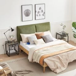 Side Table With Charging Station, Set Of 2 End Tables With USB Ports And Sockets For Living Room And Bedroom Rustic Brown