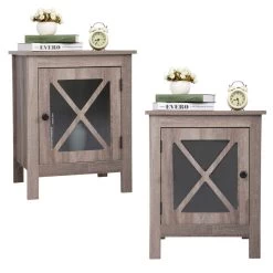 Set Of 2 Nightstand, Bedside Furniture With X-Shaped Door, Bedroom End Table, Light Gray Gray