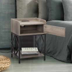 Set Of 2 Wood Nightstand, Farmhouse End Table With Charging Station, USB Ports, Cabinet, And Shelf, Sofa Bedside Table For Bedroom Living Room, Adjustable Foot Pads, Rustic Gray Gray