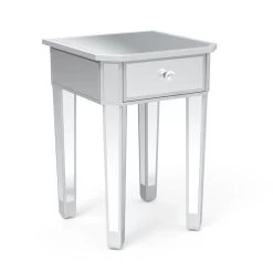 Set Mirrored Nightstand Bedside Table End Table Console Entryway Bedside Sofa Table With Drawer For Bedroom Living Room Silver