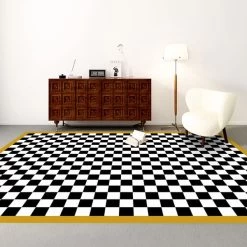 5’x 7′ Modern Checkered Area Rug Black And White Decorative Carpet Living Room Bedroom