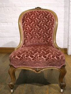 Antique Victorian Carved Walnut Nursing Chair Armchair Bedroom Chair