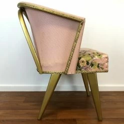 Fabulous Kitsch Mid Century Lloyd Loom Pink/Gold Floral Bedroom/Cocktail Chair 50’s