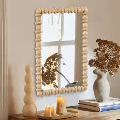 32.1″ Boho Large Rectangle Wooden Beads Wall Mirror For Living Room Bedroom In Natural
