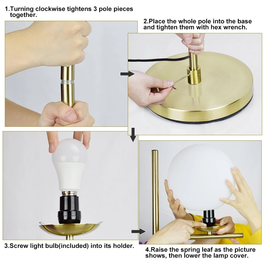 E26 TYPE BASE: This globe standing lamp includes 9 watt LED light bulb, eye caring function. (Bulb can be replaced with other bulbs, 60watt max)