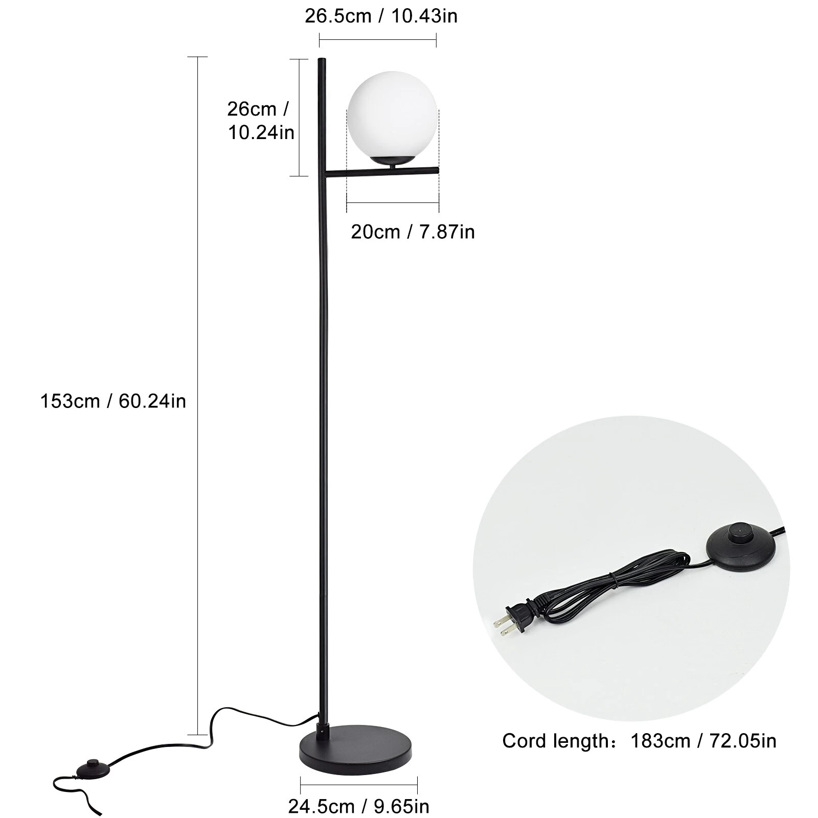 mid century style floor lamp adopt frost glass lampshade, convenient foot switch allow you to tap the lamp on/off.