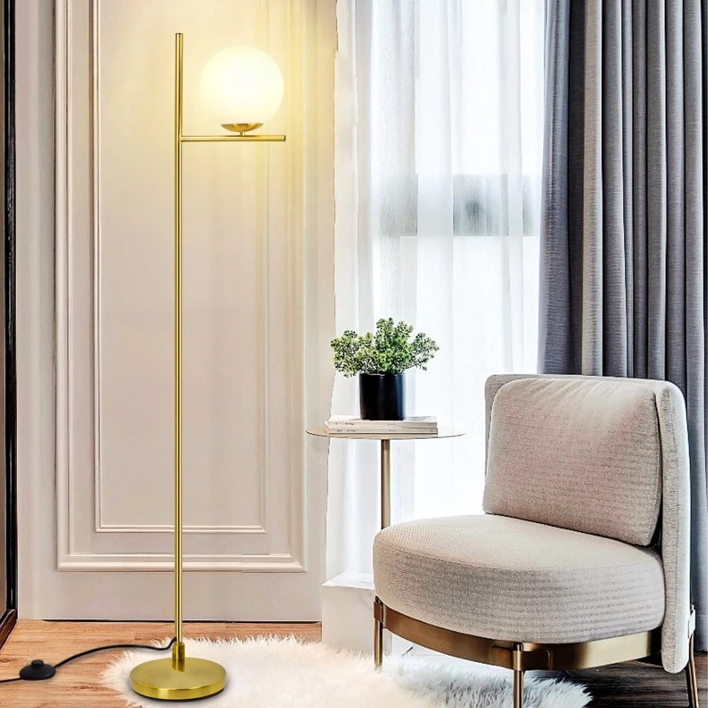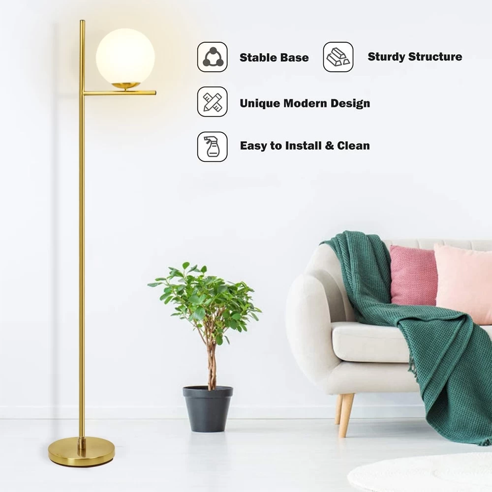 Sphere floor lamp has a stable lamp base to ensure its stability. Frost glass lampshade bring a Anti-dazzle effect.