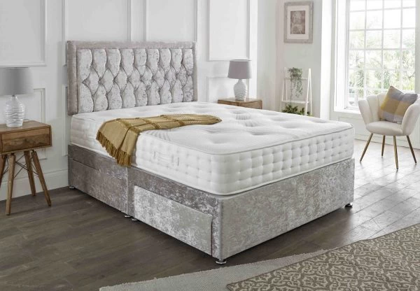 Divan Base Upholstered in Crushed Velvet Soft Fabric