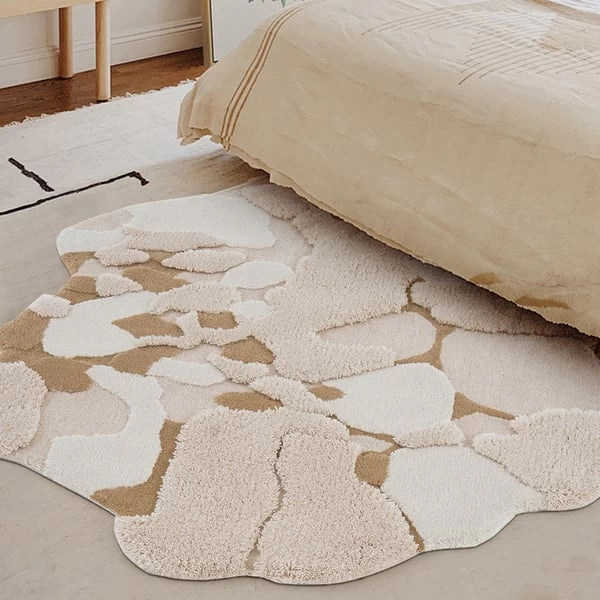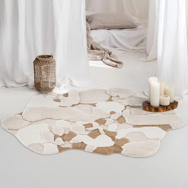 Decorate your home with this pretty, eye-popping 3D tufted wool rug. It creates both a backdrop and a ground of nature that mimics the feeling of snow. This wool blend rug stands out not just with its superior durability but also with its irregular shape. This richly-hued textured rug is ideal for the reading nook, next to your bed and living rooms.
