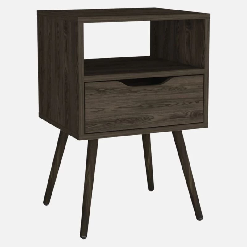 Add the essential finishing touch to your bedroom with this Modern Dark Walnut Bedroom Nightstand. The quality-grade rich, dark walnut particle board is a great sturdy material to hold all your things close to you in bed. The one cabinet and one drawer give you the option of more storage within your bedroom, helping you get rid of any visible clutter around your home! 24.8″ x 15.75″ x 13.78″