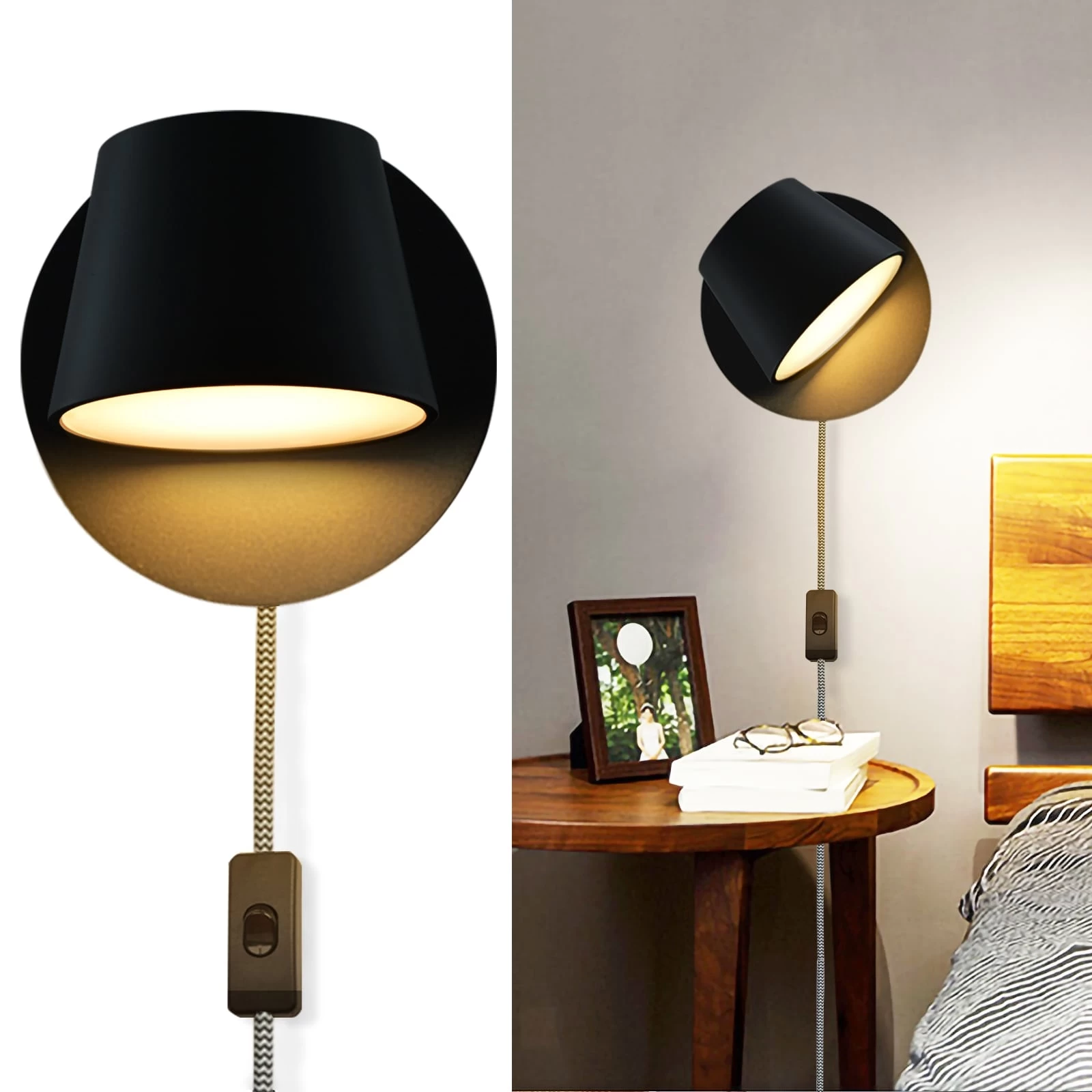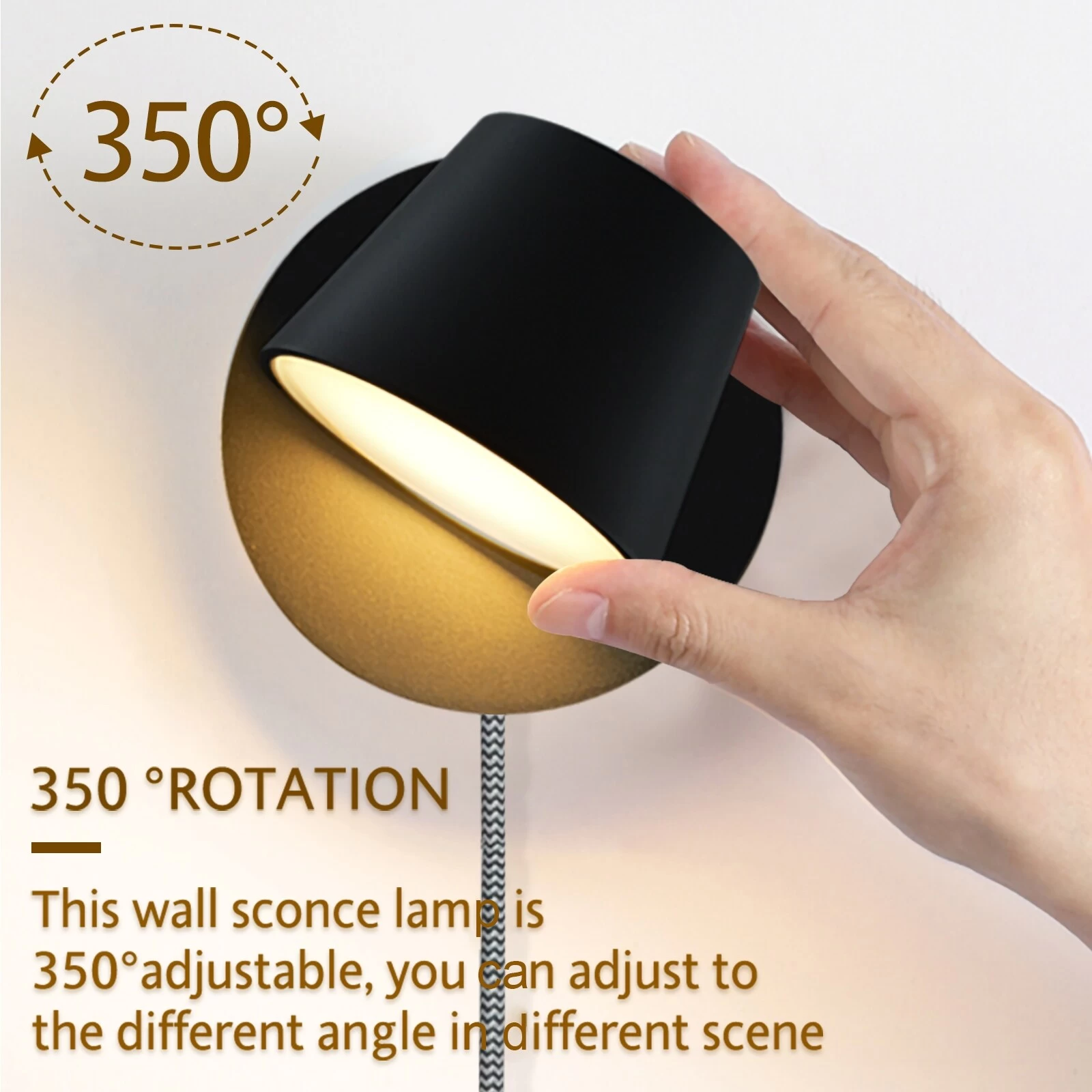 These wall sconces with a 350°adjustable head, so you can make the light cast upward or downward. You can rotate the direction of illumination according to your need. Meet your lighting needs with the functional design.