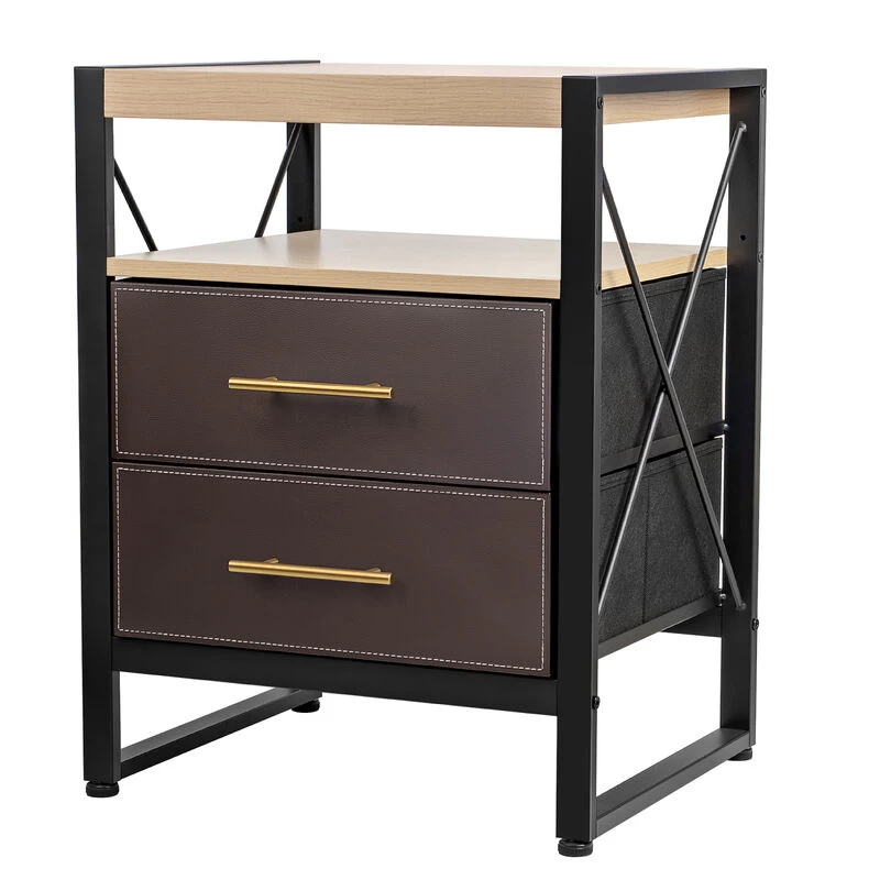 The bedside table is made of thickened board and reinforced metal frame, making it stronger and more stable.