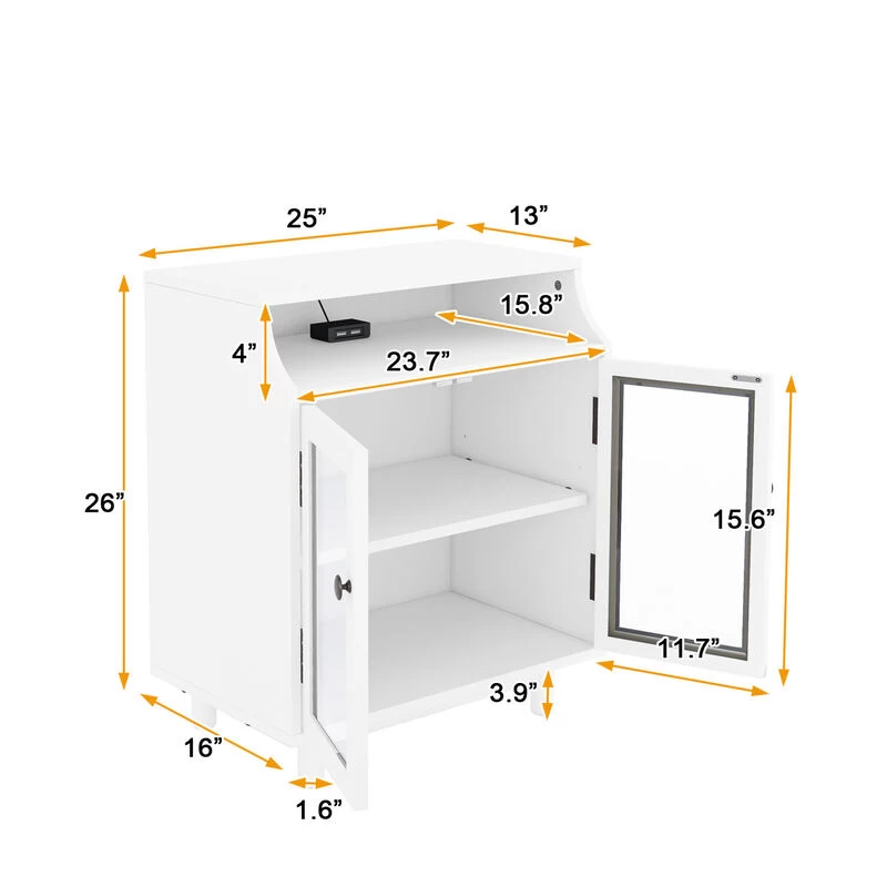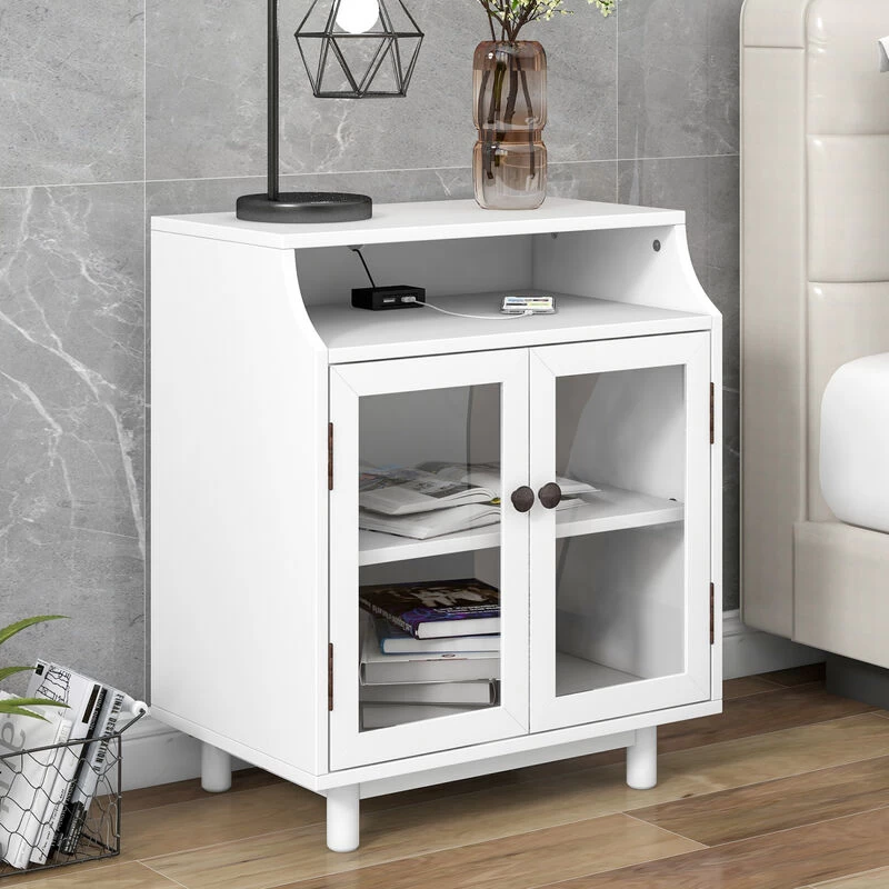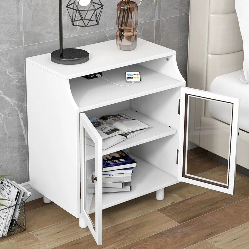 ②[Large Storage] An open cubby rests at the top of the unit, which provides a great place to store books, magazines, or other accessories. This nightstand has a roomy glass door cabinet that opens up to two shelves for extra storage.