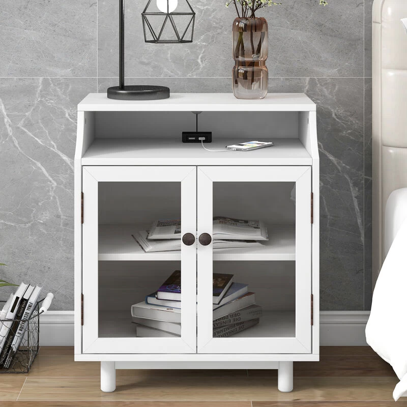 Bring distinctive design and versatile storage, this nightstand showcases a streamlined silhouette that exudes mid-century modern flair in your living space. Made from high-quality pine wood and MDF with 4 round tapered legs that add to the design. An open cubby rests at the top of the unit, which provides a great place to store books, magazines, or other accessories. This nightstand has a roomy glass door cabinet that opens up to two shelves for extra storage. This compact design is an ideal option for a smaller space as an end table or nightstand.