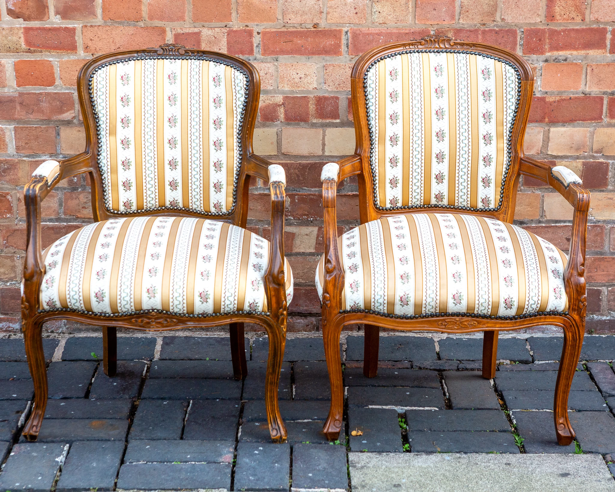 Made in the Louis XV style, they have lovely carvings and curves throughout, with cabriole legs and not a straight line in sight.