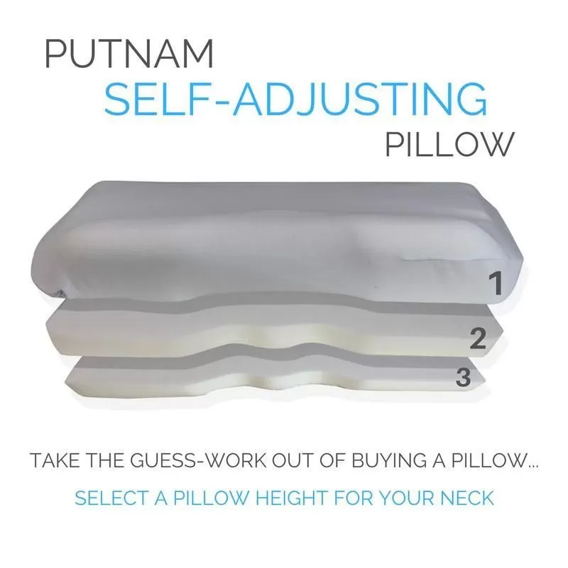 The Putnam Self-adjusting Pillow takes the guesswork out of buying a pillow allowing you to select the right height pillow for you. Tailor your pillow to your neck and back.