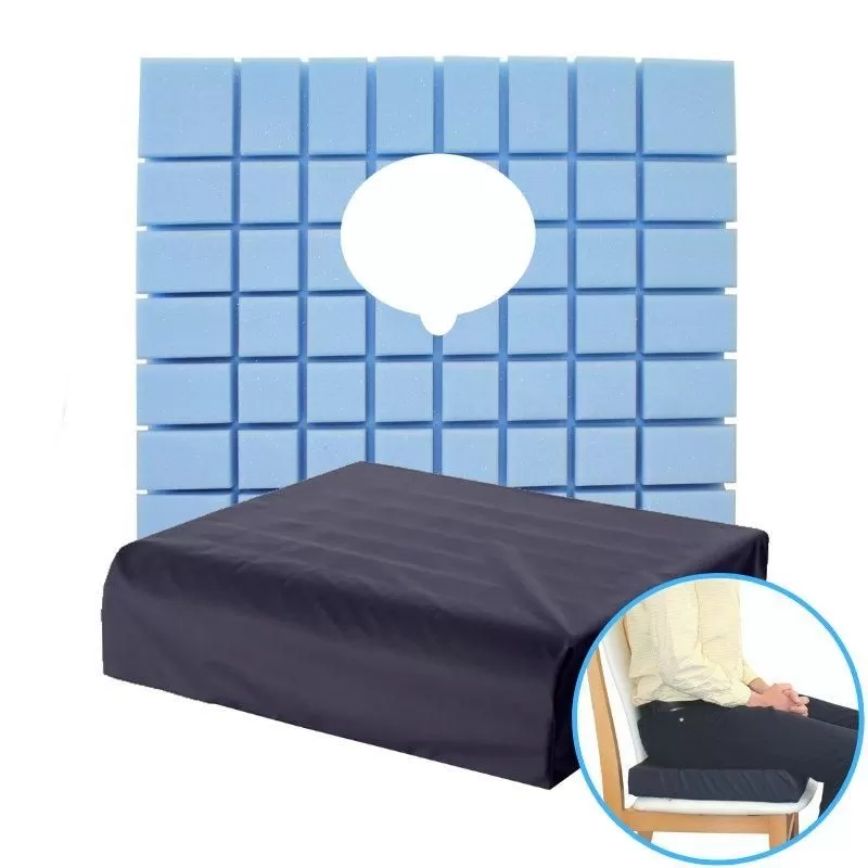 • Also available with 4 optional cut-outs for targeted pain relief. All cushions come with a cover that discreetly hides cut-out