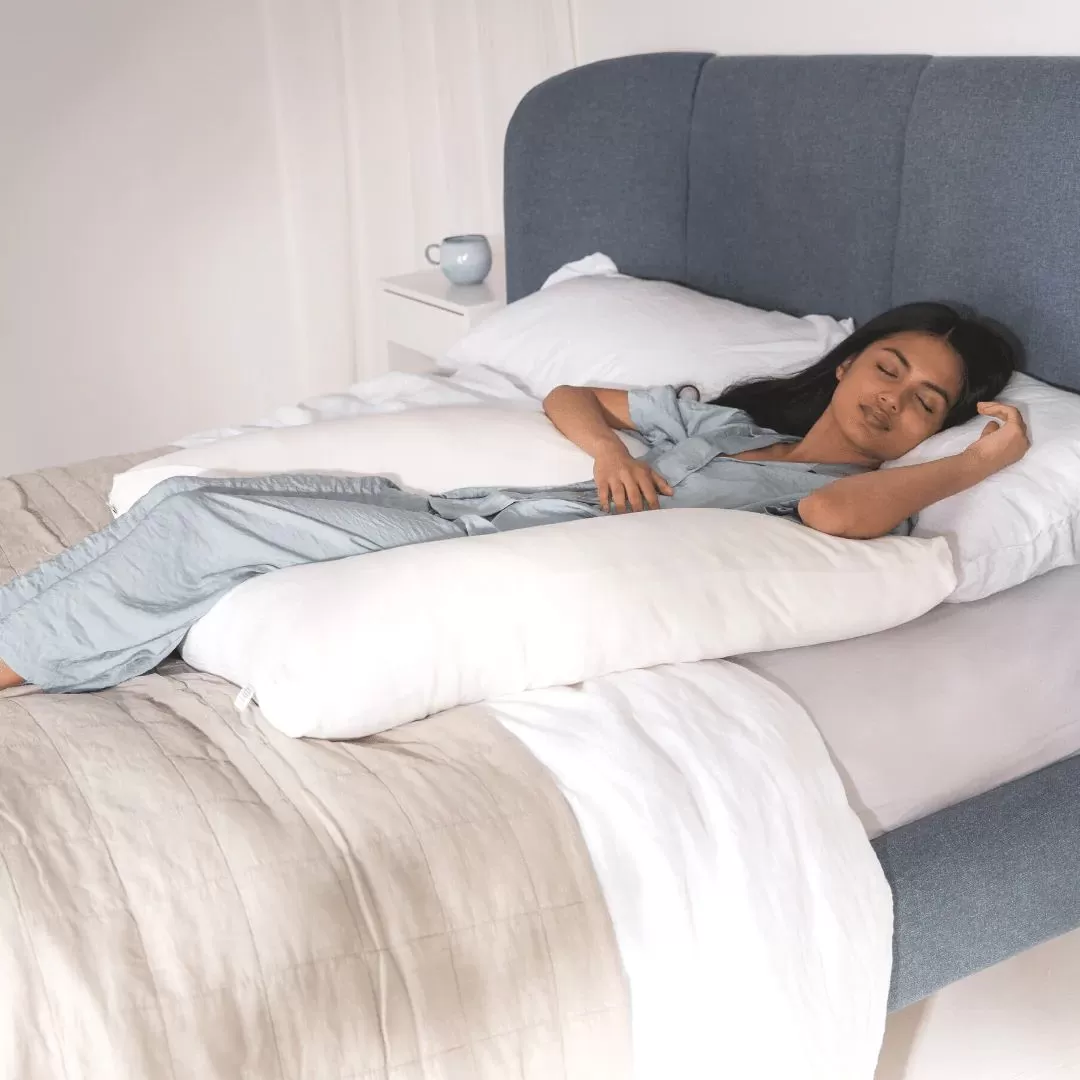 This ergonomically designed pillow can be used in a multitude of ways including; support whilst asleep, to prop yourself up in bed (watching TV, using tablet, laptop or mobile device), to rest your laptop on when working from home in bed, to separate your legs and keep your hips aligned post surgery, to support pregnant women, to raise your baby up during breast / bottle feeding, to stop cold draughts to your back in the winter and to fend off your other half (only joking!).