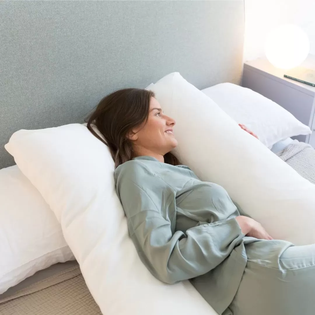This U shaped pillow is the new V pillow! It can be used instead of a standard pillow with the added benefit of dual side supports.