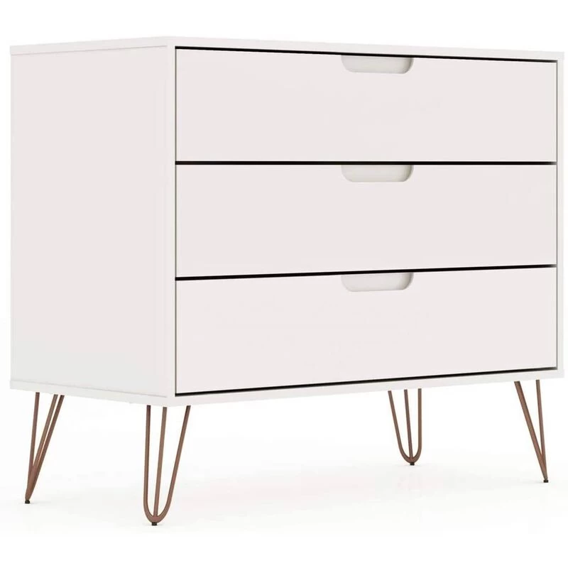 - Modern Scandinavian Style Bedroom 3-Drawer Dresser in White Wood Finish