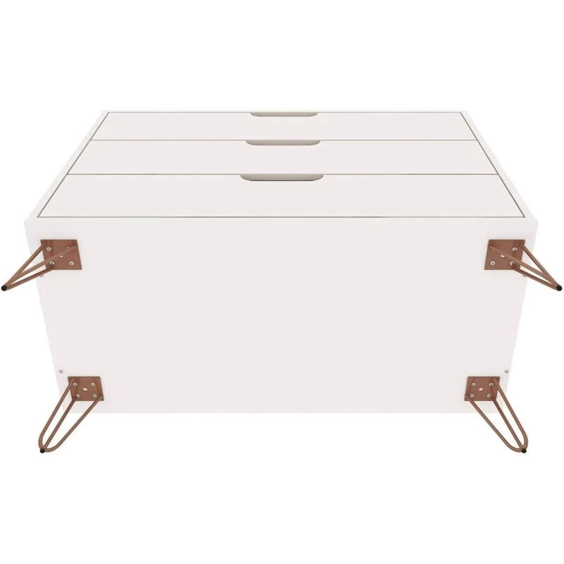- Have a Gorgeously Stylish Storage Unit in Your Place with the Rockefeller Dresser by Manhattan Comfort, Featuring a Sleek Midcentury Design in a Luxurious White Finish