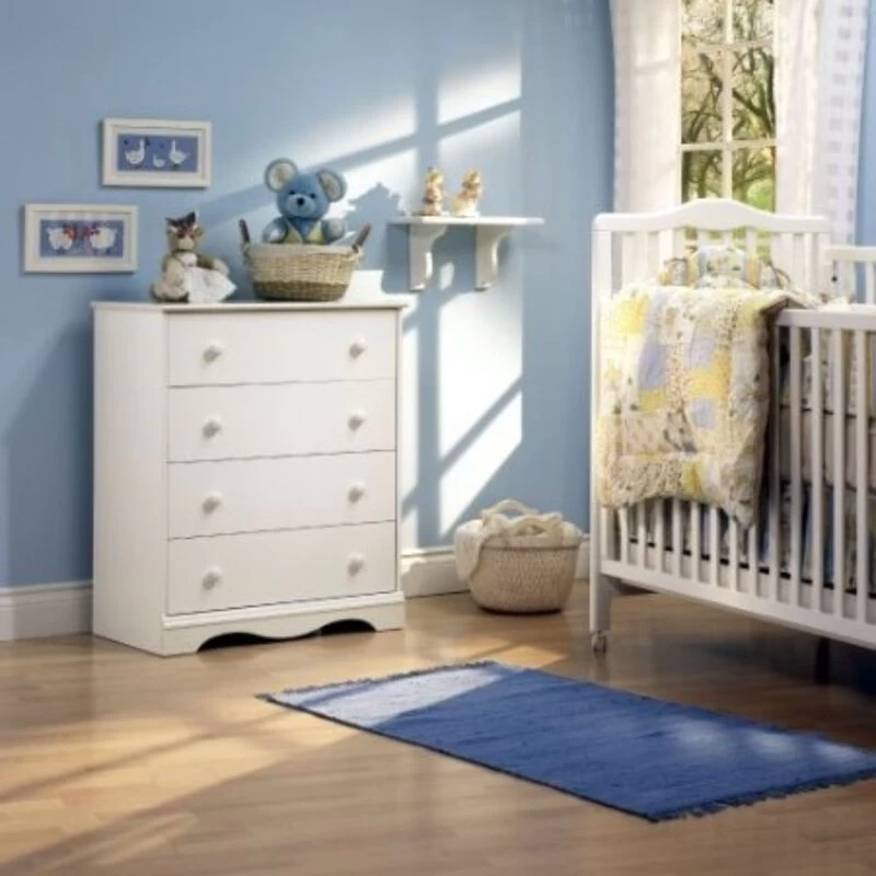 White 4 Drawer Bedroom Chest with Wooden Knobs
