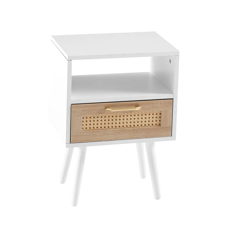 This side table is an exquisite design that is made to be used in a living room, interior, or office area. It has a rattan woven exterior and solid wood legs, making it durable and easy to clean. The table is also easy to assemble, with easy-to-follow instructions., Dimensions: 19 x 14 x 6 inches