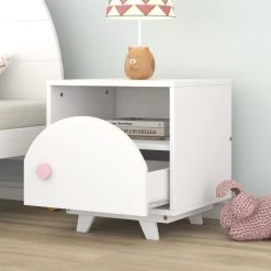Wooden Nightstand With USB Charging Ports And Three Drawers, End Table For Bedroom, White