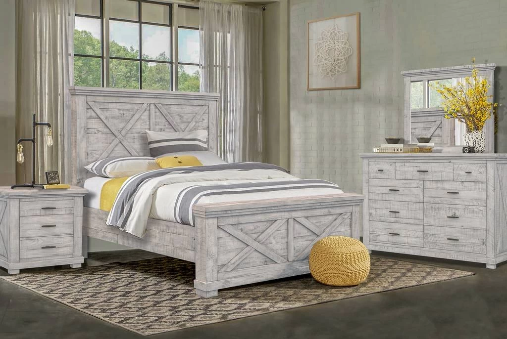 An updated take on a classic farmhouse theme, contemporary calming gray, wainscot panels and X accents provide charm and depth with rustic appeal. Decorative molding conveys traditional elegance, creating a casual chic vibe while solid metal black drawer pulls set an industrial standard. You will sense the rich, organic quality of solid New Zealand pine and Acacia wood, each piece hand rubbed, exposing natural grains and distressing. Country cottage, coastal or shabby chic, any accessories and colors you love will blend with this neutral bedroom, entryway or mirror. Update your beach house, liven up your city loft, the configurable Crossing Barn Bedroom Collection will add warmth and transitional style wherever you call home. The manufacturer backs this well-made furniture with a two year warranty.