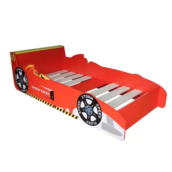 - Stylish appearance: Red colour, this toddler bed frame is covered with car design – a fun race-themed addition for the bedroom.