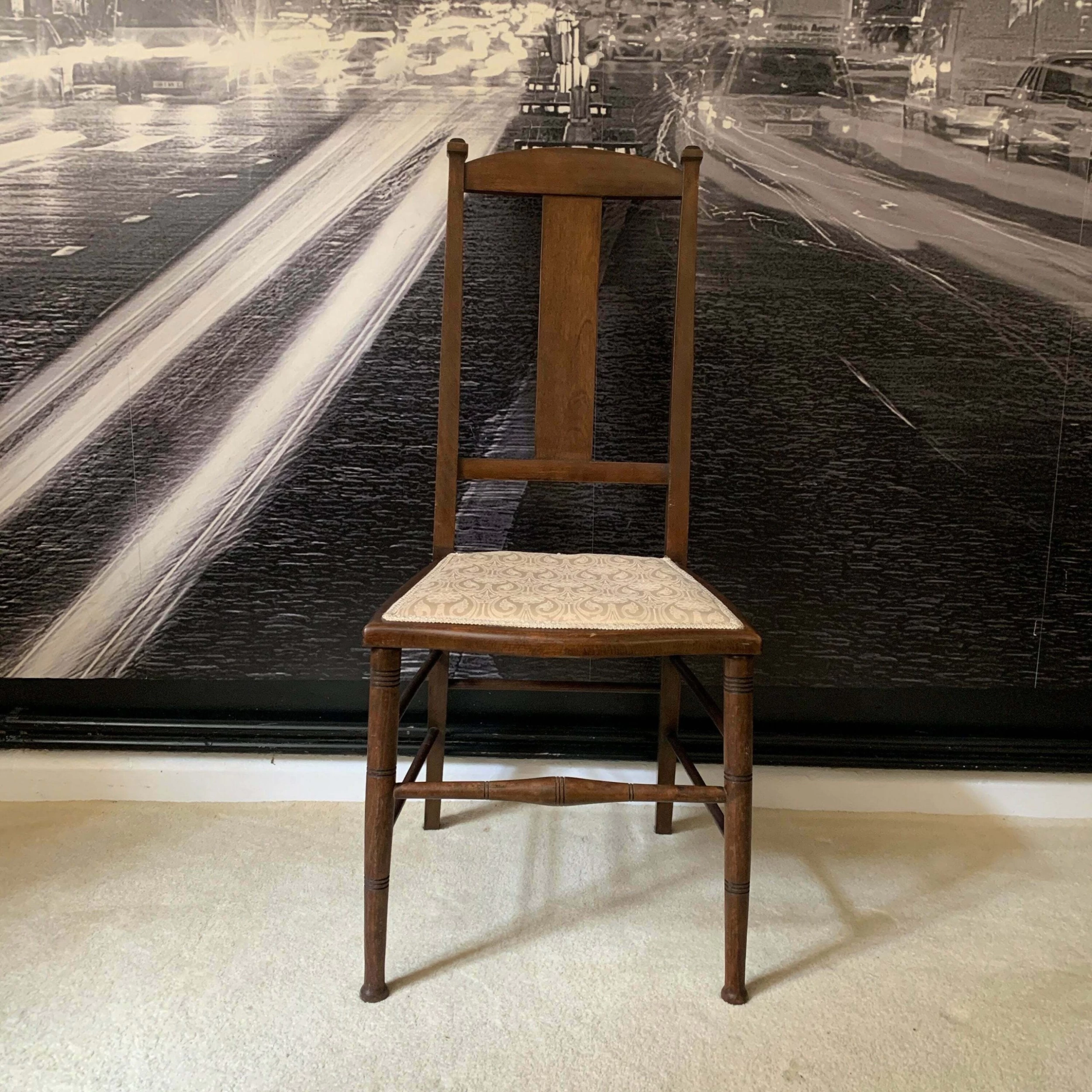 Chair upholstered in cream colour silk fabric.